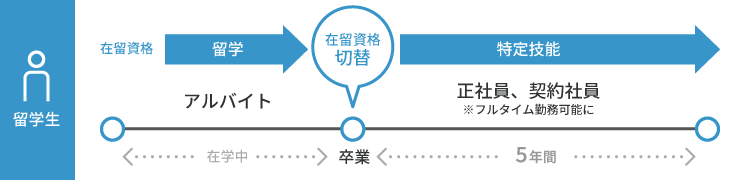 こうしたケースでは、卒業後「特定技能」へと在留資格を切り替えることで、正社員雇用が可能になります。