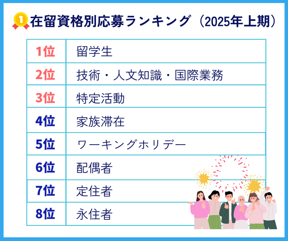 今回は、「2025年上期の応募者の在留資格別ランキング」を集計しました。