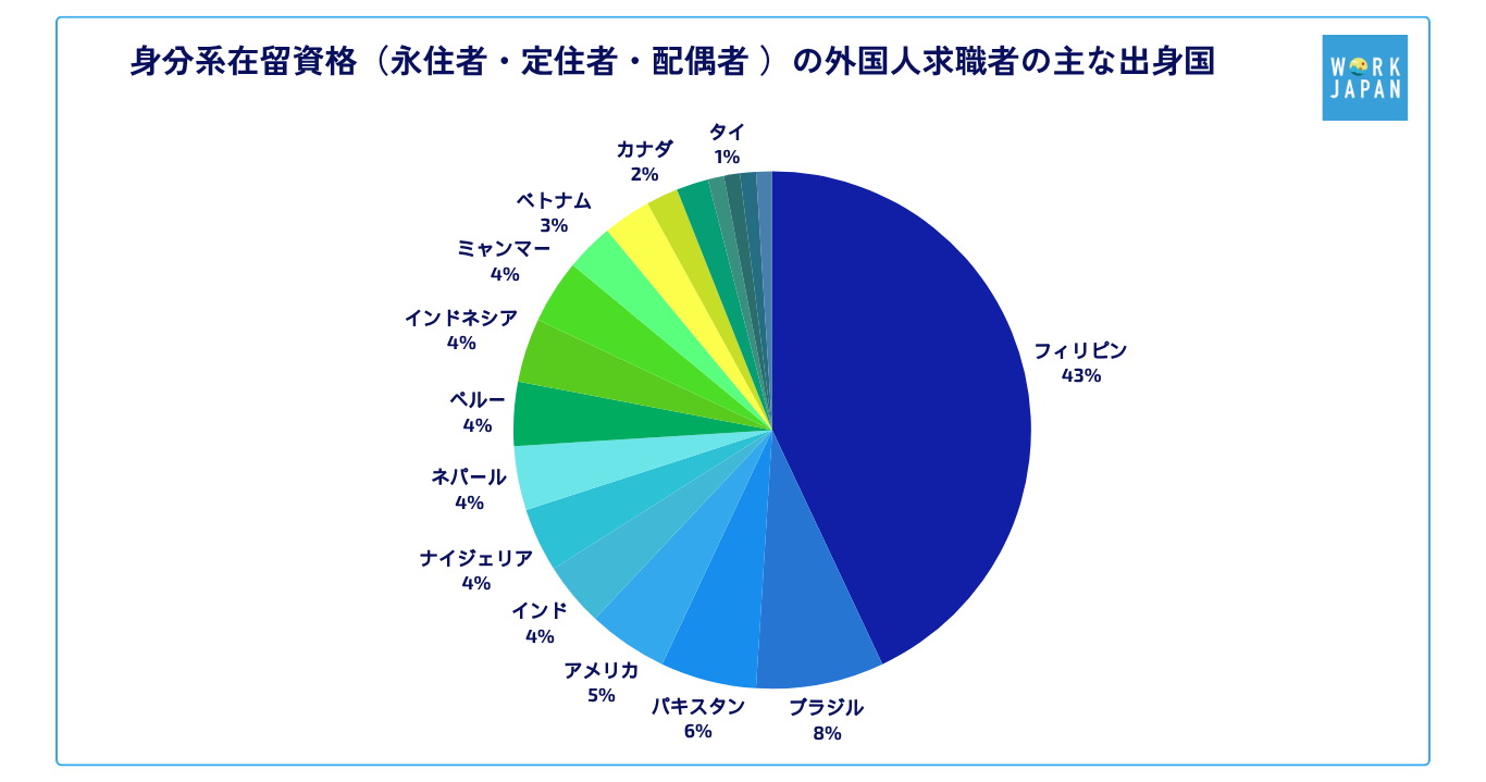 身分系在留資格の外国人求職者の出身国を分析すると、