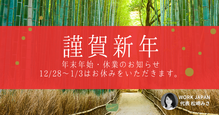 WORK JAPANカスタマーサポートチームは下記の日程でお休みをいただきます。