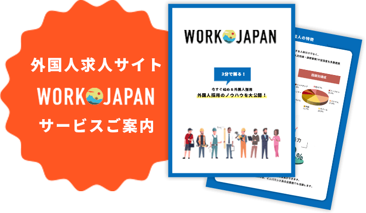 外国人求人サイトWORK JAPANでの求人掲載方法、応募や採用実績、掲載料金、WORK JAPAN活用の魅力についてご説明する資料です。