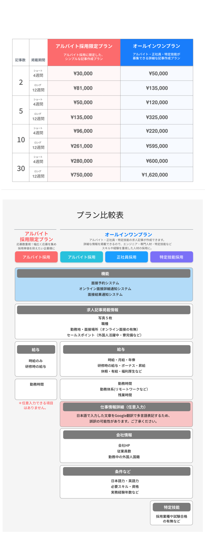 例1)正社員とアルバイトを募集する場合は2記事となります。