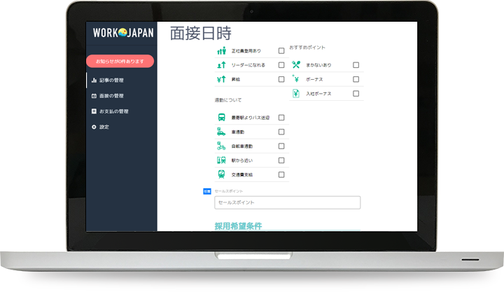 外国人求人サイトWORK JAPANでの求人掲載方法、応募や採用実績、掲載料金、WORK JAPAN活用の魅力についてご説明する資料です。